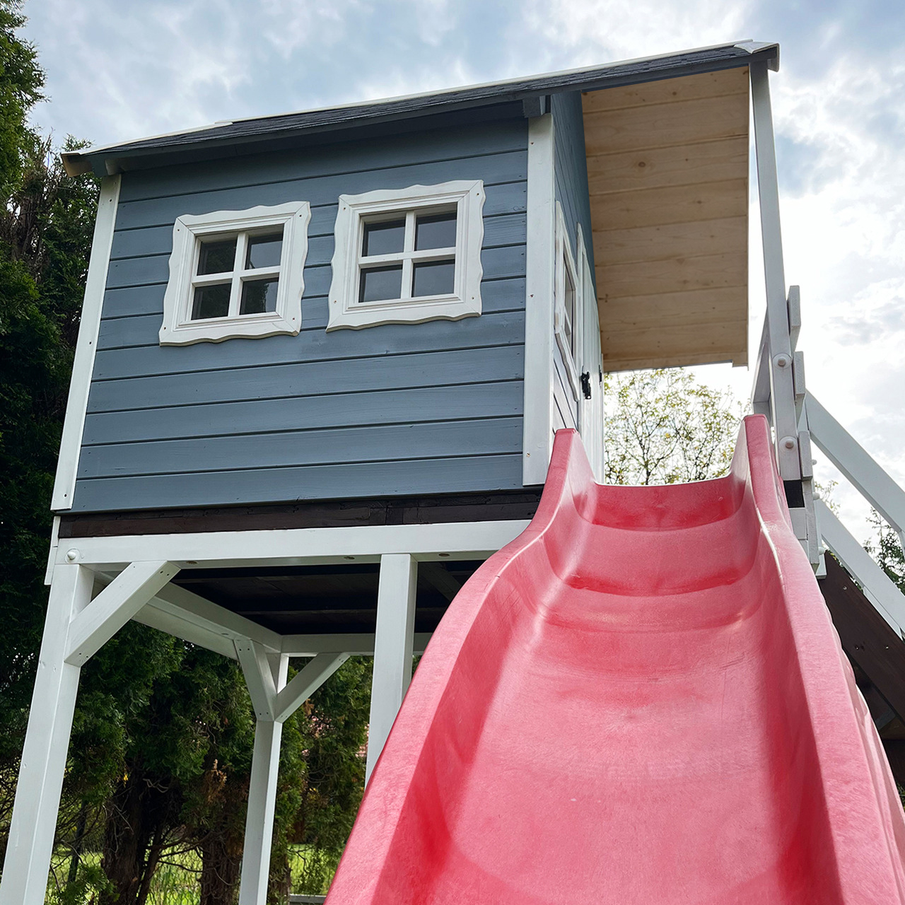 Do drewnianego domku załączona jest zjeżdżalnia BELGIJSKIEGO producenta – KBT.