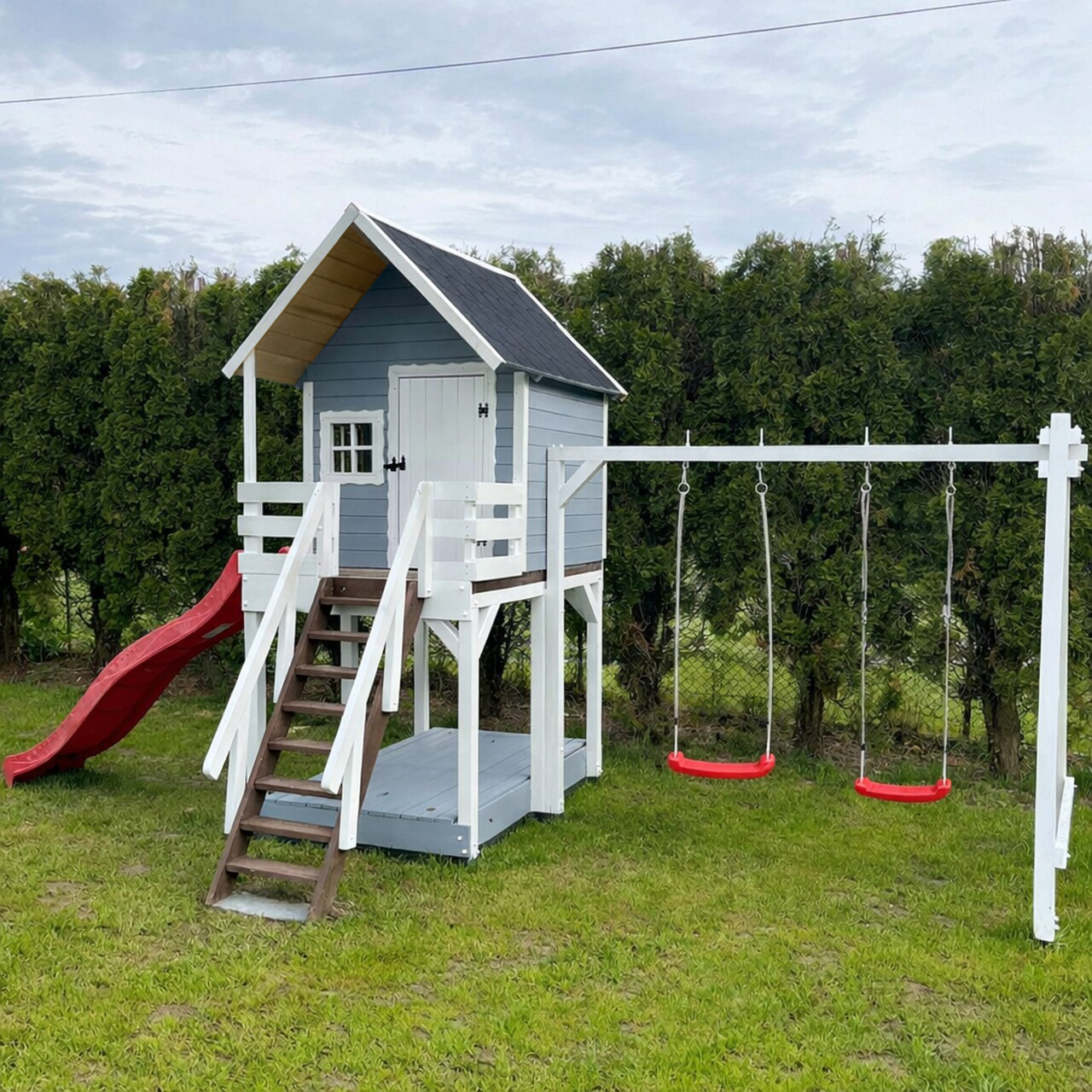 Drewniany Domek dla Dzieci ze Zjeżdżalnią i Huśtawką
