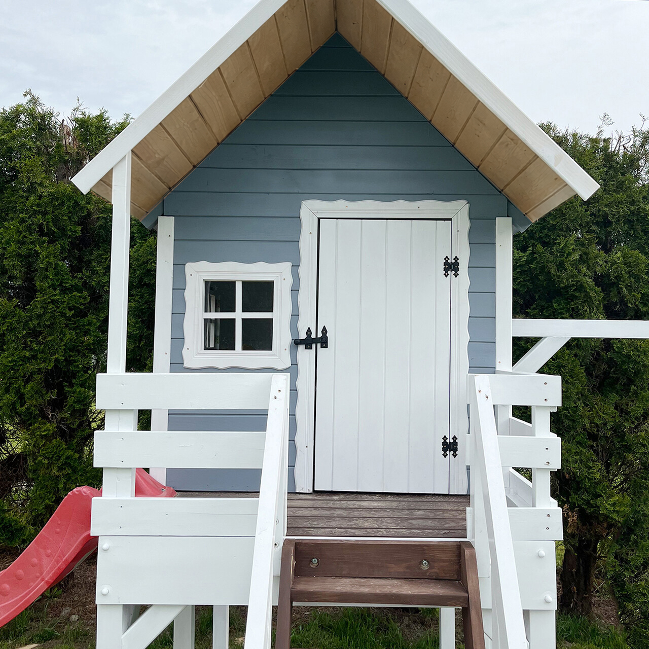 Wiele atrakcji w jednym projekcie! Drewniany domek dla dzieci ze zjeżdżalnią, huśtawką i piaskownicą zapewni wiele radości Twoim dzieciom w ogrodzie. Zaprojektowany w nowoczesnym stylu, w pięknych skandynawskich kolorach stanie się również ozdobą Twojego ogrodu.